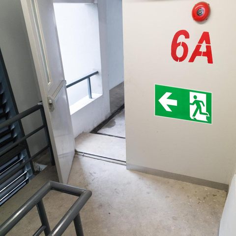 Segnale di Uscita di Emergenza Fotoluminescente in Alluminio Autoadesivo Percorso di Salvataggio 300x150mm (verso il basso) Cina